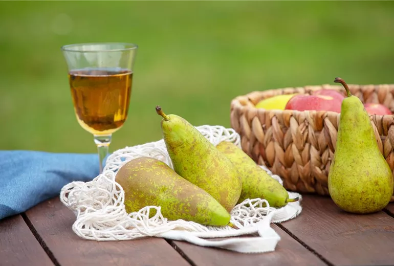 Birnen können in Holzkisten an einem möglichst kühlen Ort gelagert werden. Dabei dürfen sie allerdings nicht neben Äpfeln liegen, da diese während des Reifeprozesses das Pflanzenhormon Ethylen freisetzen, das für eine schnellere Reifung der Birnen sorgen würde und sie so auch schneller verderben lässt. Vor allem frisch vom Baum begeistern Birnen mit ihrem leckeren Geschmack, aber man kann sie auch weiterverarbeiten. Wer sie einkochen möchte, sollte sie kurz vor der Vollreife pflücken, damit sie auch im Glas noch bissfest bleiben. Zur Herstellung von Mus oder Kompott empfiehlt es sich, vollreife Birnen zu wählen, da sie dann ein besonderes Aroma mitbringen, das man auch in den Ergebnissen noch deutlich schmecken kann.