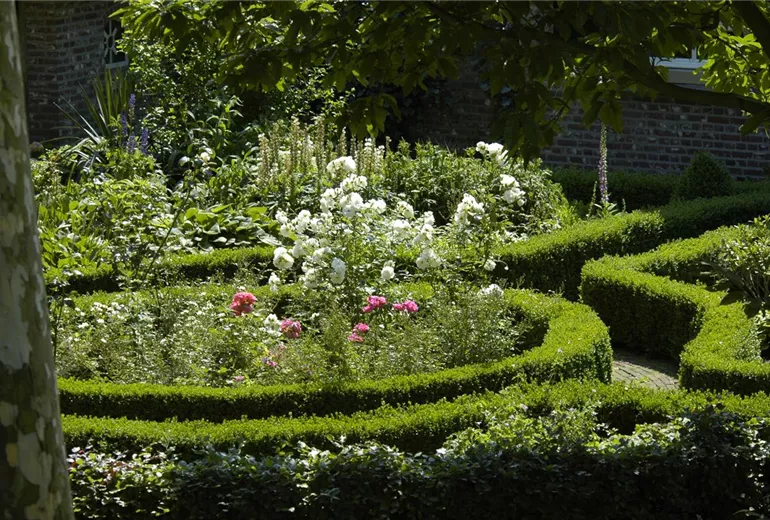 Durch die Beeteinfassungen wird verhindert, dass sich die Bepflanzung auf die Wege ausbreitet. Häufig wird Buchsbaum als Begrenzung genutzt, da er sich gut in Form schneiden lässt. Da Buchsbaum seit einigen Jahren jedoch auch anfällig für Krankheiten sein kann, wird als Alternative häufig die Heckenkirsche verwendet, die sehr robust und immergrün ist. Wenn die Beeteinfassung optisch besonders ansprechend aussehen soll, können Polsterpflanzen wie zum Beispiel Teppichphlox, Blaukissen oder Steinkraut genutzt werden. Bei großen Beeten macht sich auch Lavendel als Einfassung sehr schön. Wem eine Beeteinfassung aus Pflanzen zu viel Arbeit macht, kann sich für eine Variante aus Holz entscheiden. Dabei werden Bretter, Balken oder Rundhölzer verwendet, die hochkant in den Boden gesteckt werden.