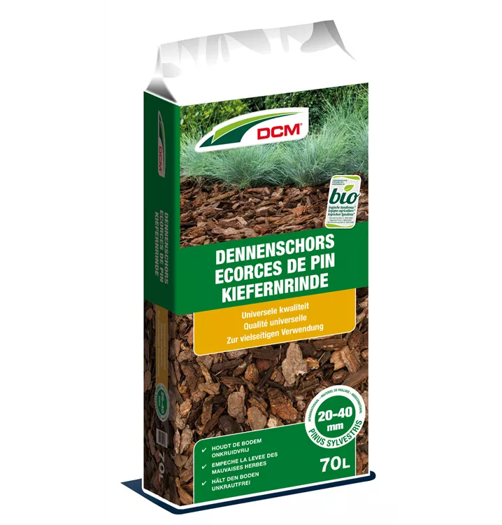 Dekorative Kiefer-Zierrinde. Schützt den Boden vor Austrocknung und Verschlämmung.
