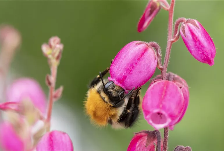 Bienenpflanzen für den Balkon, Garten oder in der freien Natur fallen häufig durch ihre bunten Farben und oft auch durch ihren angenehmen Duft auf. Pflanzen sind auf die Bestäubung durch Bienen und andere Insekten angewiesen, denn die Bestäubung durch den Wind ist eher Glückssache. Deshalb locken viele Pflanzen die Insekten durch die Farben ihrer Blüten an. So kommt es, dass bienenfreundliche Blumen mit ihren herrlichen Blüten zu den schönsten Pflanzen gehören, die die Natur zu bieten hat. Aber auch Obstgehölze und andere Pflanzen locken mit ihren duftenden Blüten jedes Jahr die Hummeln und Bienen an, um sich bestäuben zu lassen. Erdbeeren, Tomaten, Gurken und selbst Nüsse gäbe es kaum noch ohne die Hilfe der fleißigen Bienen und anderen Insekten.