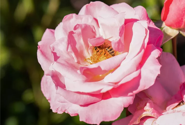 Ohne Wildbienen, Honigbienen, Hummeln und andere Insekten könnten viele Pflanzen nicht bestäubt werden. Diese kleinen Helfer, die von Blüte zu Blüte fliegen, saugen den süßen Nektar aus den Pflanzen heraus, aus dem Honigbienen dann den Honig machen. Die Blütenpollen bleiben dabei meist an den Bienen hängen, was man bei genauerem Hinsehen auch erkennen kann. Diese dienen den jungen Bienen als eiweißreiche Nahrungsquelle. Doch bleibt auf jeder angeflogenen Blüte etwas von dem Pollen oder Blütenstaub der vorherigen Blüten hängen. So kommt es zur Bestäubung der Pflanzen, wobei nicht jede Bestäubung auch automatisch zur Befruchtung führt. Ein Grund mehr, Bienenpflanzen für den Balkon zu wählen, denn ohne Bestäubung kommt es nicht zur Befruchtung und dann gibt es weder Samen noch Früchte.