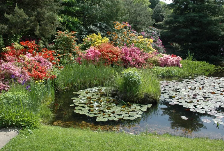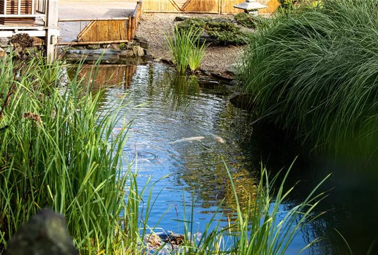 Neben den Pflanzen für den Teichrand, die besondere Anforderungen an den Standort haben, gibt es auch flexible Exemplare, die sowohl innerhalb als auch außerhalb des Gartenteichs gedeihen können. Zu diesen unkomplizierten Pflanzen für den Teichrand gehören die Trollblume, der Wasserdost sowie die Wiesen-Iris. Wer besonders attraktive Pflanzen für den Teichrand sucht, sollte den Blumen-Hartriegel, den Japan-Schneeball oder den Zier-Apfel wählen. Falls der Garten und somit auch der Gartenteich im asiatischen Stil gestaltet ist, passen Pflanzen für den Teichrand wie Magnolien, Azaleen sowie kleine Ahorne und Garten-Bonsais am besten. Kieselsteine können optisch ansprechende Lückenfüller werden oder den Zugang zum Gartenteich markieren. Mit der richtigen Bepflanzung wird auch die Pflege des Gartenteichs einfach, da sich die Pflanzen am optimalen Standort gut entwickeln.