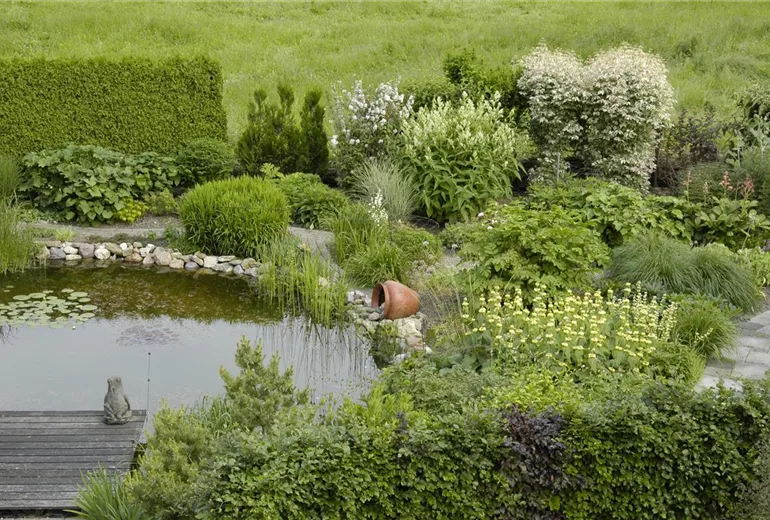Viele Gärten werden durch einen Teich zu einer wahren Gartenoase. Damit sich der Gartenteich gut einbindet, ist die Bepflanzung rund um den Teich entscheidend. Wer einen Gartenteich plant oder einen bereits vorhandenen Teich neu gestalten möchte, sollte daher auf den Teichrand besonders achten. Mit der Wahl der richtigen Pflanzen gelingt ein harmonischer Übergang zwischen Land und Wasser. Neben der Auswahl der Pflanzen ist aber auch die Funktion des Randbereichs zu berücksichtigen sowie topografische Besonderheiten, die Auswirkungen auf die Art der Bepflanzung haben können. Daher sollte man die Bepflanzung von Teichrändern nicht dem Zufall überlassen, sondern diesen Bereich ganz bewusst planen und gestalten. Bei richtiger Wahl der Pflanzen und der Anordnung wird der Teich außerdem deutlich länger intakt bleiben können.