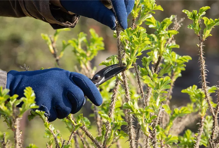 Beim Entfernen von Verblühtem bei der Rosenpflege im Sommer sollte nicht direkt unter der welken Blüte geschnitten werden, sondern am besten einen halben Zentimeter über dem ersten gut ausgebildeten Fünferblatt, da sich unter diesem Blatt eine kräftige Knospe befindet. Ein höherer Schnitt bei der Rosenpflege im Sommer führt meist nur zu schwachen Neutrieben, die kleine Knospen bilden. Bei Rosenarten, die im Büschel blühen, sollte der komplette verblühte Blütenstand bis zum ersten Blatt entfernt werden. Wird hier bei der Rosenpflege im Sommer zu stark zurückgeschnitten, wird die Holzbildung gefördert und die zweite Blüte verzögert sich. Bei Edelrosen wird bis auf das erste vollständige Blatt zurückgeschnitten und bei langstieligen Edelrosen ist zu beachten, dass der Schnitt bis zur Wuchshöhe des Strauches reicht.