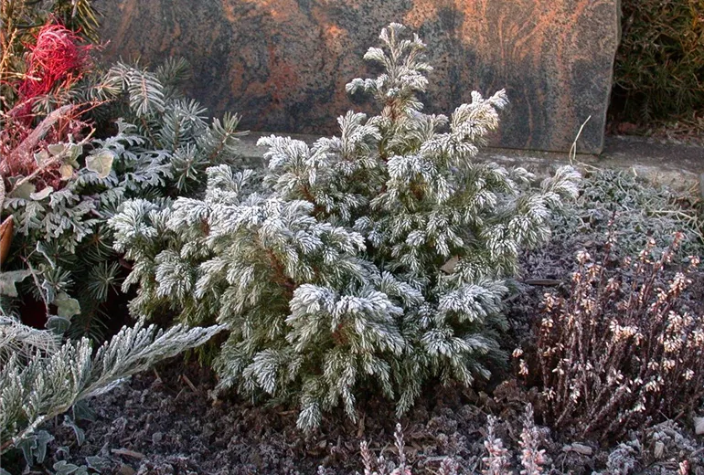Als Angehöriger sollte man vor allem darauf achten, dass eine Grabstätte zu jedem Zeitpunkt im Jahr gepflegt ist. Um dies zu gewährleisten und auf der anderen Seite Zeit und Kosten einzusparen, sollte die Grabgestaltung mit Bedacht geplant sein. In den meisten Fällen besteht die Bepflanzung von Grabstätten, die als wichtigste Komponenten zur Grabgestaltung gehört, aus drei Bereichen. Im ersten Schritt sollten die sogenannten Rahmenpflanzen bestimmt werden. Als Rahmenpflanzen bezeichnet man in der Regel Gehölze, die den Grabstein und die Bodendecker einer Grabstätte farblich und aufgrund ihres Wuchses verbinden. Hier eignen sich klassische Gehölze wie Kiefer, Eibe oder Wacholder. Sie werden an das obere Ende des Grabes, jeweils neben dem Grabstein gepflanzt. Unterschiedliche Pflanzen ergeben ein stimmiges Gesamtbild und rücken den Grabstein in den Fokus.