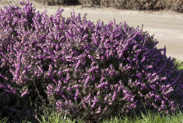 Alle Heidearten, ob Winter-, Frühlings-, Sommer- oder Winterheide, sind in der Regel absolut pflegeleicht. Trotzdem gibt es bei der Pflege der Heidepflanzen einiges zu beachten, damit es im Garten rund ums Jahr in den verschiedensten Farben blüht. Staunässe beispielsweise ist besonders schädlich für die ansonsten robusten Pflanzen. Mit einer guten Drainage und der Pflanzung an einem möglichst sonnigen Standort kann diese jedoch leicht vermieden werden. Einmal im Jahr dürfen die Heidepflanzen auch ein wenig Dünger in Form von Hornspänen oder Kompost bekommen. Der beste Zeitpunkt für die alljährliche Düngung ist der Frühling bis Ende April. Ansonsten benötigen die genügsamen Heidepflanzen nur ab und zu einen kleinen, nicht ins Holz gehenden Schnitt, der sowohl ein kompaktes Wachstum also auch die reichliche Knospen- und Blütenbildung fördert. Winter- und Frühjahrsblüher unter den Heiden bekommen ihren Schnitt direkt im Anschluss an ihre Blütezeit. Die Heidepflanzen, die im Sommer oder Herbst blühen, sollten erst im darauffolgenden Frühjahr geschnitten werden, damit sie im Winter noch vor eisigen Frösten geschützt sind.